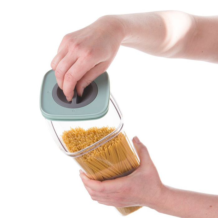 Ємність призначена для зберігання продуктів. Корпус і кришка виготовлені з пластику, ущільнювач в кришці - з силікону. Завдяки спеціальній системі в кришці, що перешкоджає доступу повітря, термін зберігання продуктів збільшується. Мити тільки вручну.