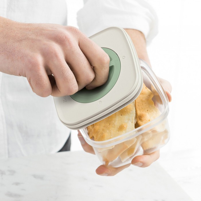 Особливості: герметичне, повітронепроникне ущільнення на кришці контейнера для збереження свіжості та хрусткої текстури продуктів; поворотна кришка забезпечує надійне закриття; штабелюваний дизайн для економічного зберігання