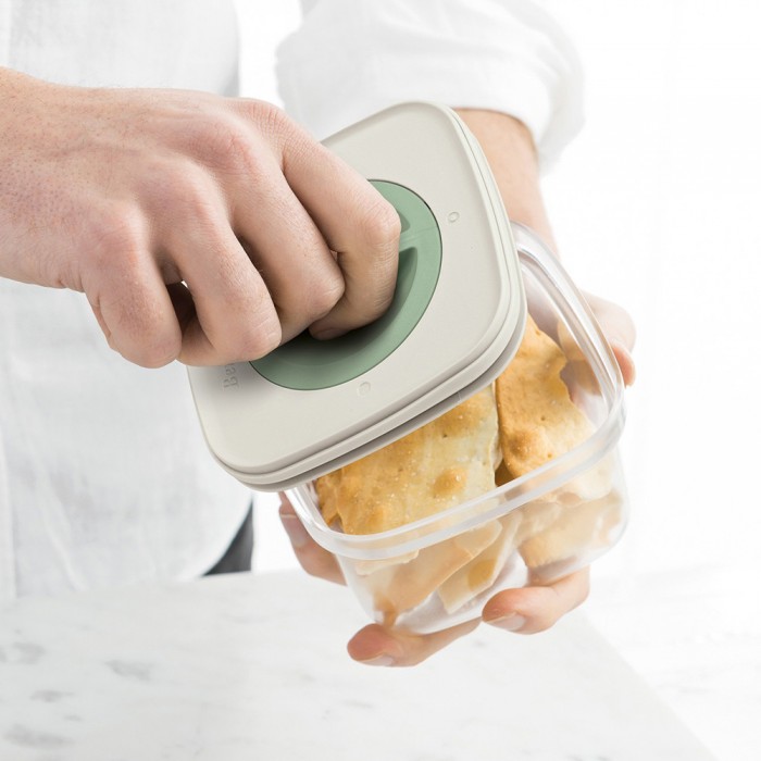 Особливості: герметичне, повітронепроникне ущільнення на кришці контейнера для збереження свіжості та хрусткої текстури продуктів; поворотна кришка забезпечує надійне закриття; штабелюваний дизайн для економічного зберігання