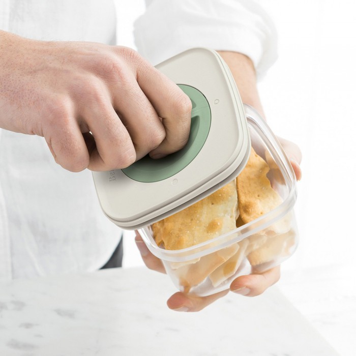 Особливості: герметичне, повітронепроникне ущільнення на кришці контейнера для збереження свіжості та хрусткої текстури продуктів; поворотна кришка забезпечує надійне закриття; штабелюваний дизайн для економічного зберігання