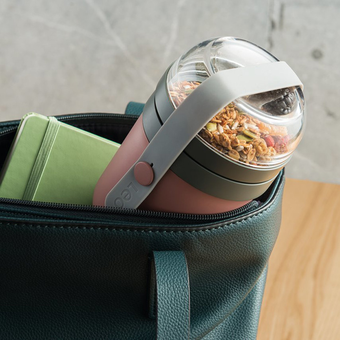 Набір контейнерів виготовлений з якісного пластика, що не містить шкідливих домішок. Складається з двох ємностей (0,18 л і 0,45 л), які з'єднуються одна з одною силіконової застібкою. У нижній ємності ви можете зберігати йогурт, сир ... У верхній - ягоди, сухофрукти або пластівці. Таким чином, з вами завжди буде смачний і корисний ланч. Рекомендується мити вручну.