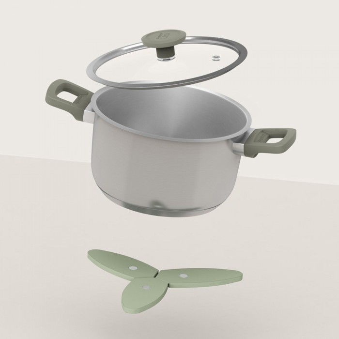 Особливості: підставка підходить для захисту поверхонь від впливу температури; виготовлена ​​з термостійкого силікону з магнітним центром, що легко кріпиться до дна посуду; зручно зберігати у складеному вигляді