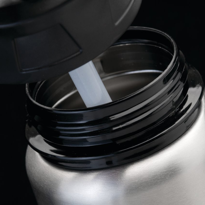 Фляга виготовлена з нержавіючої сталі. Кришка з високоякісного пластику, має клапан для комфортного наливання рідини.