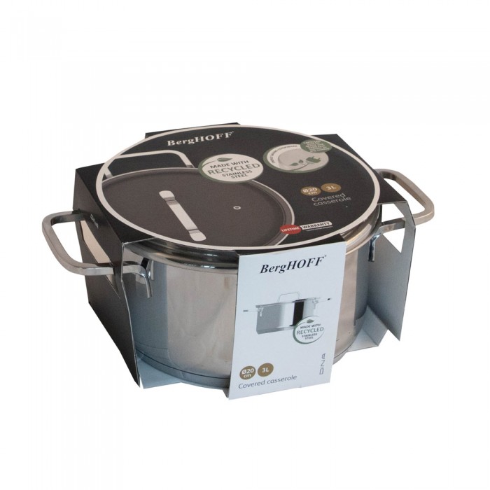 Особливості: корпус виготовлений із переробленої нержавіючої сталі; 3-х шарове капсульне дно забезпечує швидке нагрівання та рівномірний розподіл тепла; на внутрішній стінці нанесено розмітку об'єму; стильна кришка із чорного тонованого скла з вбудованим отвором для виходу пари; завдяки скляній кришці можна стежити за приготуванням страв; підходить для всіх типів плит, включаючи індукційні; підходить для використання у духовці без кришки; температурна стійкість до 250°C; легко очищується
