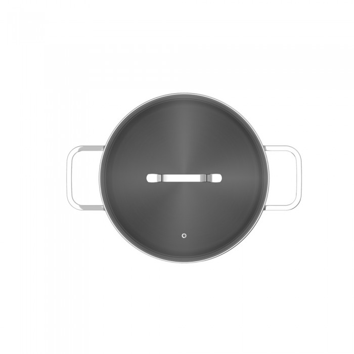 Особливості: корпус виготовлений із переробленої нержавіючої сталі; 3-х шарове капсульне дно забезпечує швидке нагрівання та рівномірний розподіл тепла; на внутрішній стінці нанесено розмітку об'єму; стильна кришка із чорного тонованого скла з вбудованим отвором для виходу пари; завдяки скляній кришці можна стежити за приготуванням страв; підходить для всіх типів плит, включаючи індукційні; підходить для використання у духовці без кришки; температурна стійкість до 250°C; легко очищується
