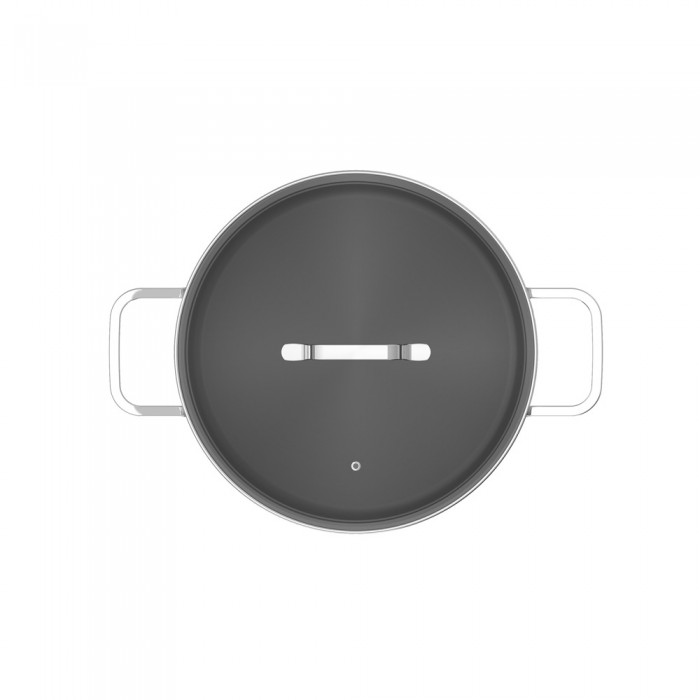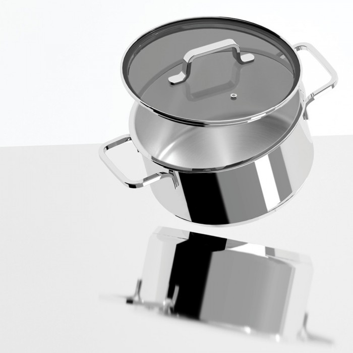 Особливості: корпус виготовлений із переробленої нержавіючої сталі; 3-х шарове капсульне дно забезпечує швидке нагрівання та рівномірний розподіл тепла; на внутрішній стінці нанесено розмітку об'єму; стильна кришка із чорного тонованого скла з вбудованим отвором для виходу пари; завдяки скляній кришці можна стежити за приготуванням страв; підходить для всіх типів плит, включаючи індукційні; підходить для використання у духовці без кришки; температурна стійкість до 250°C; легко очищується
