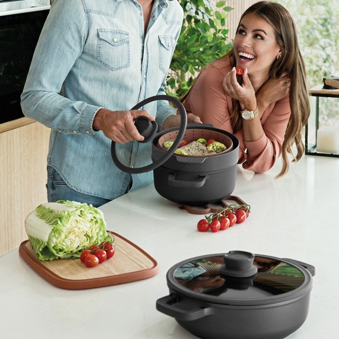 Особливості: корпус з литого алюмінію продовжує термін служби каструлі, забезпечує швидке нагрівання та рівномірний розподіл тепла, полегшуючи приготування та догляд за посудом; антипригарне покриття Ferno Green не містить ПФОК, свинець та кадмій; фенольні ручки з силіконовою вставкою для зручного м'якого утримання та безпеки; 2-х шарове цільнодискове дно; вбудований зливний отвір, який одночасно служить паровим клапаном; спеціальна ручка на кришці, на яку можна покласти ложку; цю каструлю можна використовувати в поєднанні зі складною пароваркою LEO; підходить для всіх типів плит, включаючи індукційні; підходить для використання в духовці завдяки знімним силіконовим накладкам на ручках корпусу