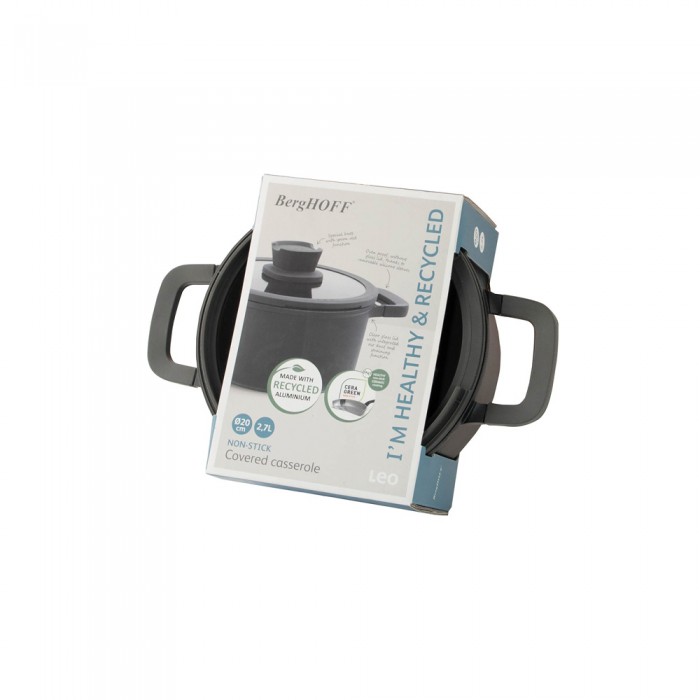 Особливості: корпус з литого алюмінію продовжує термін служби каструлі, забезпечує швидке нагрівання та рівномірний розподіл тепла, полегшуючи приготування та догляд за посудом; 100% екологічне та безпечне для здоров'я керамічне антипригарне покриття CeraGreen, яке дозволяє смажити практично без олії (не містить PFAS); завдяки скляній кришці можна стежити за приготуванням страв; вбудований зливний отвір, який одночасно служить паровим клапаном; спеціальна ручка на кришці, на яку можна покласти ложку; фенольні ручки для зручного м'якого утримання та безпеки; 2-х шарове цільнодискове дно; підходить для всіх типів плит, включаючи індукційні; без кришки та знімних силіконових насадок на ручках підходить для використання у духовці; температурна стійкість до 230°C