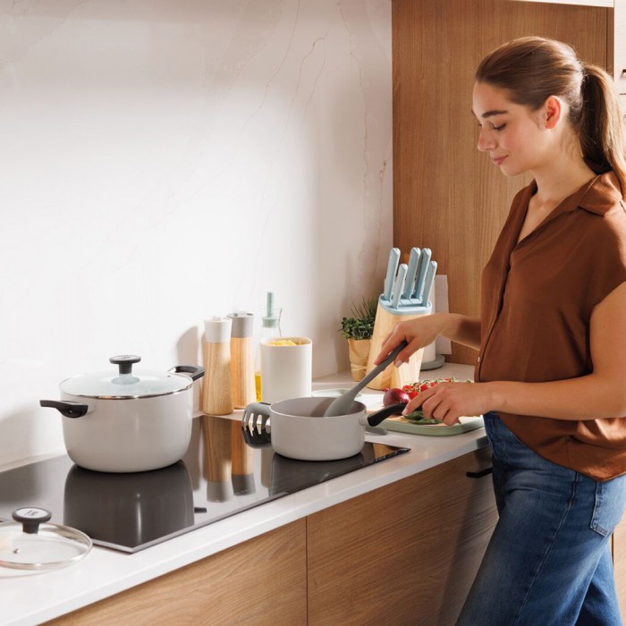 Догляд: рекомендується ручне миття; рекомендується використання неметалічних (поліпропіленових, силіконових, дерев'яних) кухонних інструментів для запобігання пошкодженню антипригарного покриття.