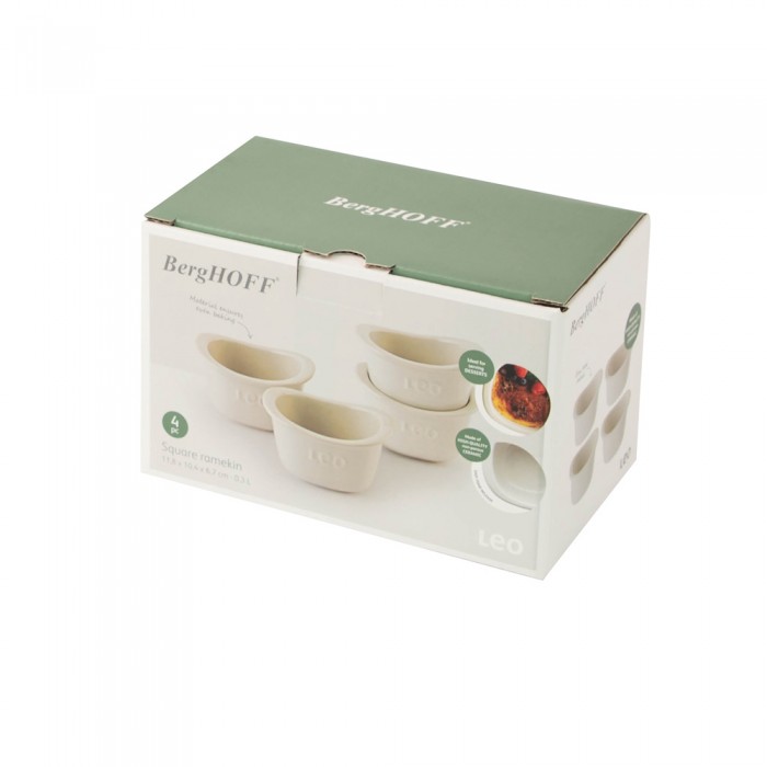 Особливості: підходять для всіх видів міні-запіканок, суфле, крем-брюле та багато іншого; високоякісна кераміка забезпечує рівномірний розподіл та утримання тепла; легке вилучення продукту; підходять для використання в духовці та мікрохвильовій печі; температурний режим до 240 ° C; легко очищаються; прикрашені логотипом LEO