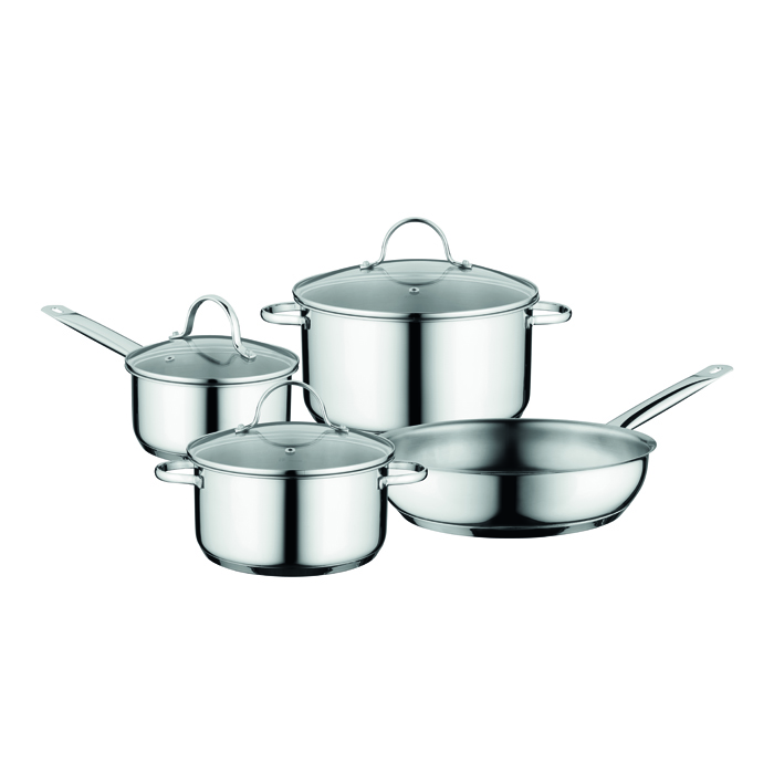 Набір посуду Comfort виготовлений з високоякісної нержавіючої сталі 18/10. Має дзеркальне полірування зовні і матове всередині. Тришарове капсульне дно не деформується при нагріванні і забезпечує швидкий та рівномірний розподіл тепла. Завдяки товщині бічні ручки не нагріваються. Скляна кришка з отвором для виходу пари дозволяє контролювати весь процес приготування в оптимальному режимі. Підходить для всіх типів плит. Підходить для миття в посудомийній машині.
