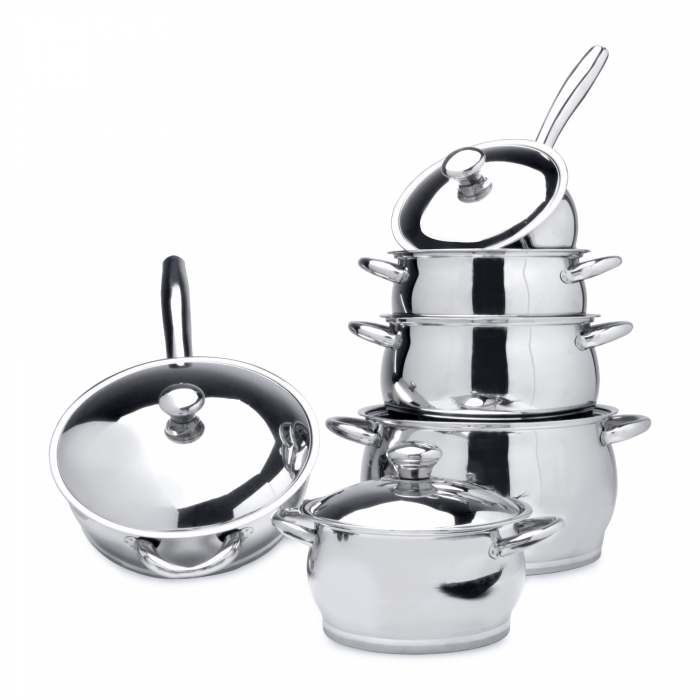 Набір посуду виготовлений з нержавіючої сталі 18/10. Товщина стінок 0,8 мм. Має унікальне 6-ти шарове дно що зберігає енергію для швидкого приготування. Зовні дзеркальна поліровка. Практичний ободок для виливання. Стильні ручки для безпечного і міцного утримання. Кришки із нержавіючої сталі без отвору для виходу пари. Підходить для всіх типів плит. Підходить для посудомийної машини. Упаковано в кольорову подарункову коробку.