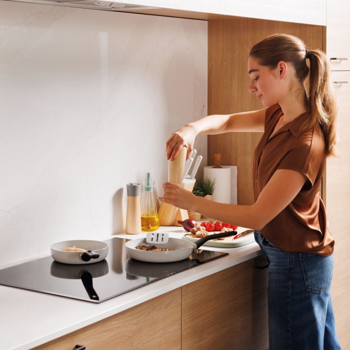 Догляд: рекомендується ручне миття; рекомендується використання неметалічних (поліпропіленових, силіконових, дерев'яних) кухонних інструментів для запобігання пошкодженню антипригарного покриття.