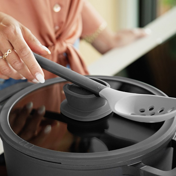 Особливості: корпус з литого алюмінію продовжує термін служби набору посуду, забезпечує швидке нагрівання та рівномірний розподіл тепла, полегшуючи приготування та догляд за посудом; 100% екологічне та безпечне для здоров'я керамічне антипригарне покриття CeraGreen, яке дозволяє смажити практично без олії (не містить PFAS); завдяки скляним кришкам можна стежити за приготуванням страв; вбудований зливний отвір, який одночасно служить паровим клапаном; спеціальні ручки на кришках, на які можна покласти ложку; фенольні ручки для зручного м'якого утримання та безпеки; у ручках отвори для вертикального зберігання; 2-х шарове цільнодискове дно; підходять для всіх типів плит, включаючи індукційні; підходять для духовки; температурна стійкість каструлі та ковша без кришок до 230°C; температурна стійкість сковороди до 180°C