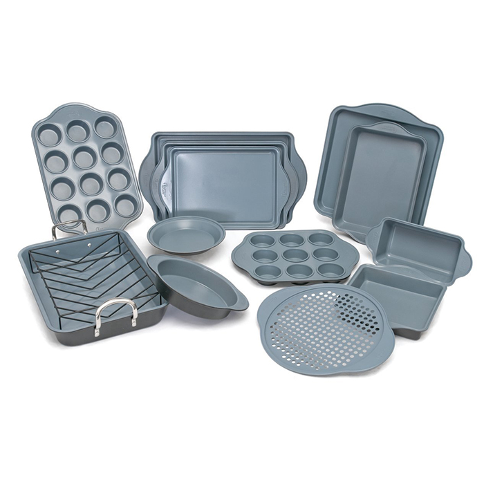 Деко виготовлено з алюмінійованої вуглецевої сталі, всередині антипригарне покриття. Колір всередині синьо-сірий; зовні - чорний. Товщина стінок - 0,8 мм. Не підходить для миття в посудомийній машині.