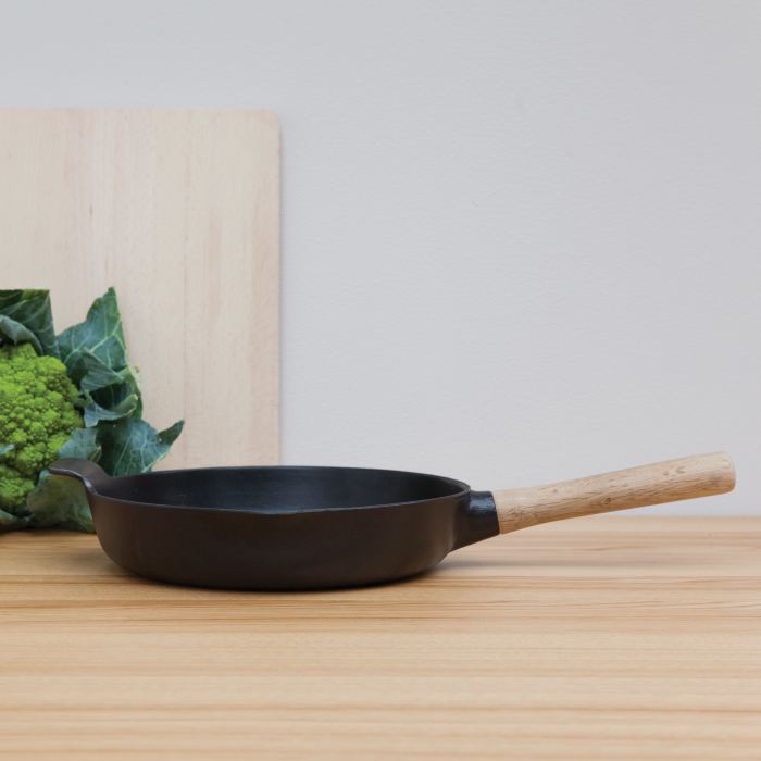 Сковорода виготовлена з чавуну, який чудово зберігає тепло. Ручка з міцної деревини робить використання більш комфортним. Підходить для експлуатації на всіх типах плит. Рекомендується ручне миття.