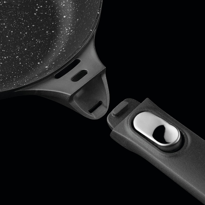 Особливості: корпус з литого алюмінію продовжує термін служби сковороди, забезпечує швидке нагрівання; антипригарне покриття Ferno Green не містить ПФОК, свинець та кадмій, має ідеально гладку поверхню для комфортного догляду за посудом; 2-х шарове цільнодискове дно для швидкого та рівномірного розподілу тепла та енергоефективного приготування їжі; знімна ручка, що не нагрівається, для економії місця при зберіганні та використанні в духовій шафі; зручний механізм зняття/кріплення ручки - одним клацанням; на ручці отвір для вертикального зберігання; підходить для всіх типів плит, включаючи індукційні