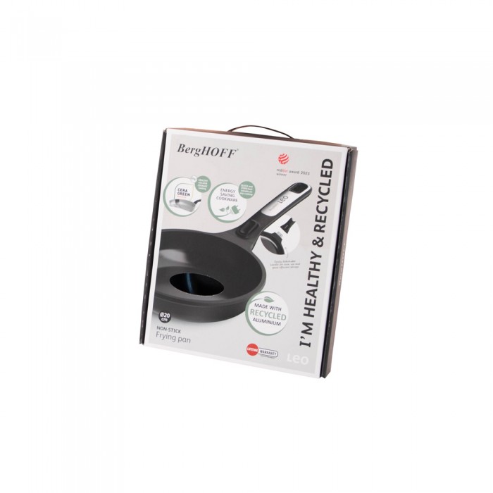 Особливості: серія Phantom — це ідеальне поєднання екологічності, функціональності та мінімалістичного дизайну; корпус з литого алюмінію забезпечує швидке нагрівання та рівномірний розподіл тепла, полегшуючи приготування та догляд за посудом; 100% екологічне та безпечне для здоров'я керамічне антипригарне покриття CeraGreen, яке дозволяє смажити практично без олії (не містить PFAS); знімна фенольна ручка зручна і безпечна, дозволяє зекономити місце при зберіганні; цільнодискове індукційне дно; підходить для всіх типів плит, включаючи індукційні; підходить для духовки; температурна стійкість до 230°C (без знімної ручки); легко очищується