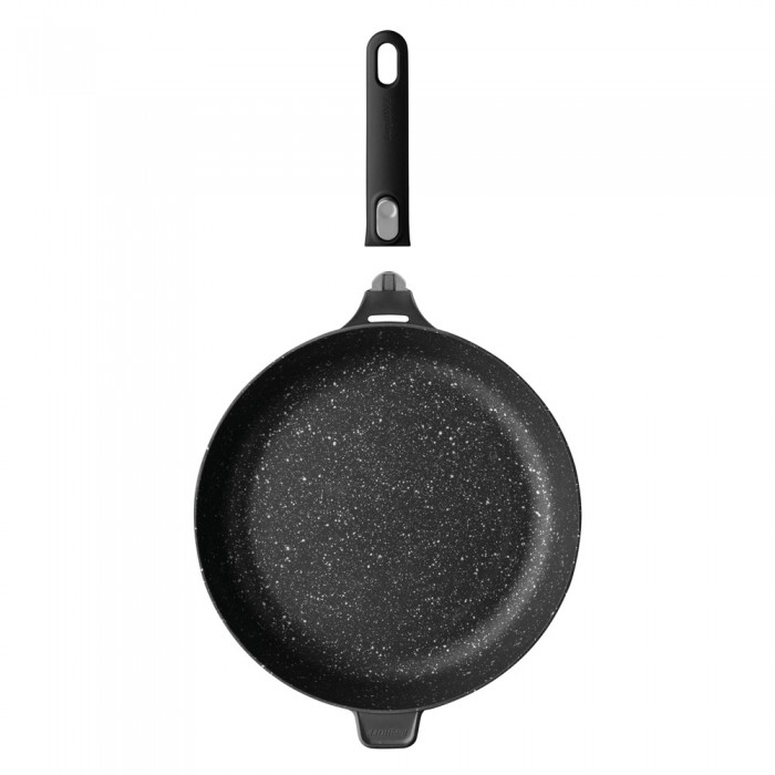Особливості: корпус з литого алюмінію продовжує термін служби сковороди, забезпечує швидке нагрівання; антипригарне покриття Ferno Green не містить ПФОК, свинець та кадмій, має ідеально гладку поверхню для комфортного догляду за посудом; 2-х шарове цільнодискове дно для швидкого та рівномірного розподілу тепла та енергоефективного приготування їжі; знімна ручка, що не нагрівається, для економії місця при зберіганні та використанні в духовій шафі; зручний механізм зняття/кріплення ручки - одним клацанням; на ручці отвір для вертикального зберігання; підходить для всіх типів плит, включаючи індукційні