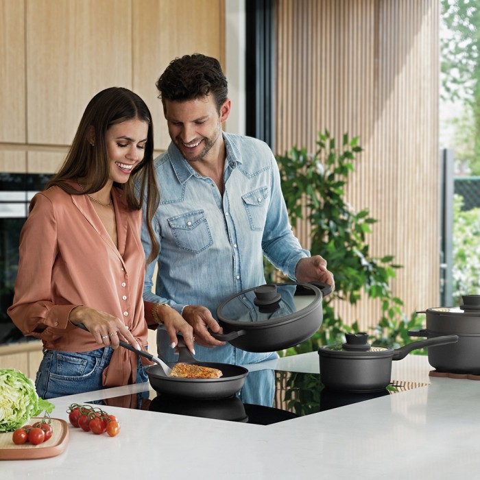 Особливості: корпус з литого алюмінію продовжує термін служби сковороди, забезпечує швидке нагрівання та рівномірний розподіл тепла, полегшуючи приготування та догляд за посудом; 100% екологічне та безпечне для здоров'я керамічне антипригарне покриття CeraGreen, яке дозволяє смажити практично без олії (не містить PFAS); фенольна ручка з силіконовою вставкою для зручного м'якого утримання та безпеки; 2-х шарове цільнодискове дно; у ручці отвір для вертикального зберігання; підходить для всіх типів плит, включаючи індукційні; підходить для духовки; температурна стійкість до 180°C