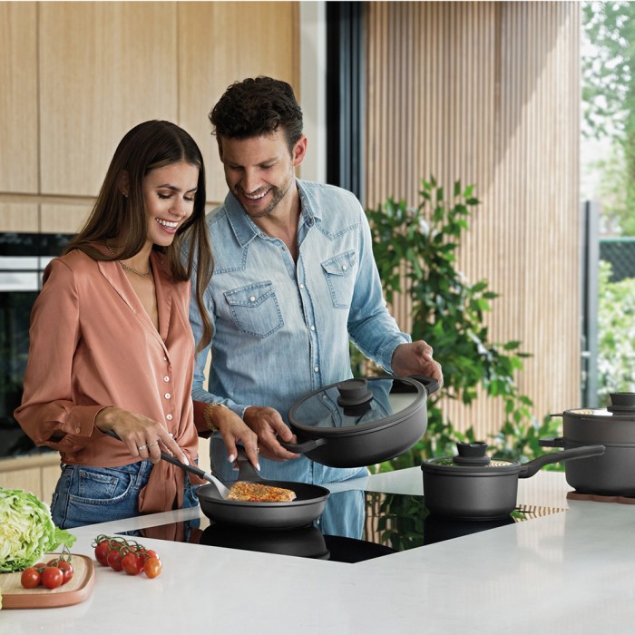 Особливості: корпус з литого алюмінію продовжує термін служби сотейника, забезпечує швидке нагрівання та рівномірний розподіл тепла, полегшуючи приготування та догляд за посудом; антипригарне покриття Ferno Green не містить ПФОК, свинець та кадмій; фенольні ручки з силіконовою вставкою для зручного м'якого утримання та безпеки; 2-х шарове цільнодискове дно; вбудований зливний отвір, який одночасно служить паровим клапаном; спеціальна ручка на кришці, на яку можна покласти ложку; підходить для всіх типів плит, включаючи індукційні; підходить для використання в духовці завдяки знімним силіконовим накладкам на ручках корпусу