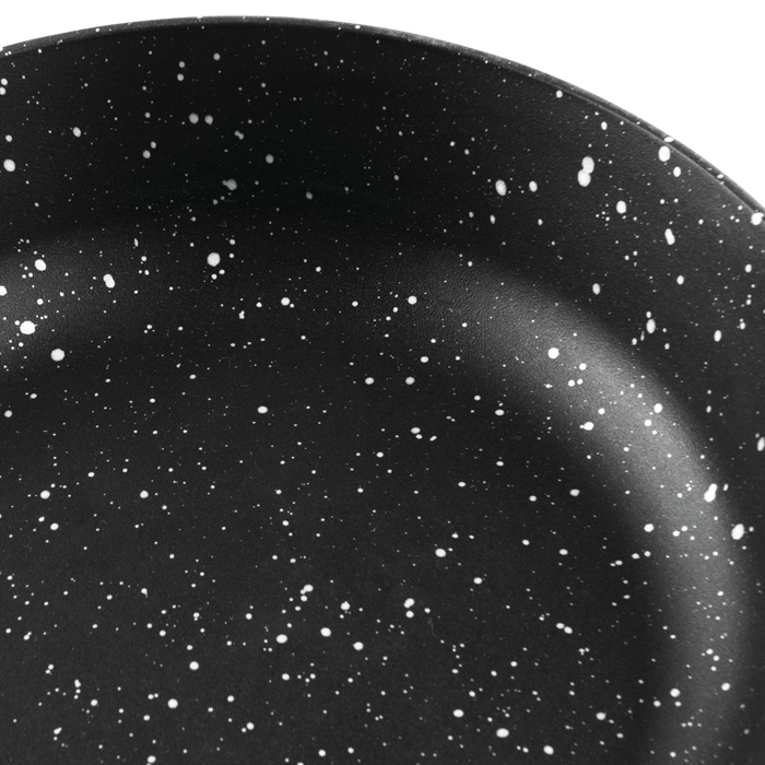 Особливості: корпус з литого алюмінію продовжує термін служби сотейника, забезпечує швидке нагрівання; антипригарне покриття Ferno Green не містить ПФОК, свинець та кадмій, має ідеально гладку поверхню для комфортного догляду за посудом; 2-х шарове цільнодискове дно для швидкого та рівномірного розподілу тепла та енергоефективного приготування їжі; завдяки отворам на обідку можна зливати рідину, не знімаючи кришки; при перемішуванні страв кришку можна зафіксувати на ручці каструлі; підходить для всіх типів плит, включаючи індукційні; не підходить для духовки