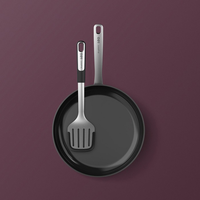 Особливості: виготовлена ​​з високоякісної нержавіючої сталі з ручкою з переробленого пластику; легкий матеріал для зручного використання; завдяки силіконовому краю підходить для використання з антипригарним покриттям; має отвір для зберігання у вертикальному положенні; глянсова поверхня стійка до появи подряпин