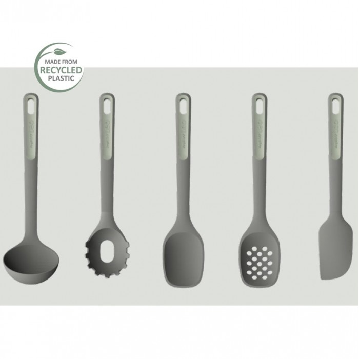 Особливості: ложка виготовлена з переробленого пластику; термостійкість до 220 ° C; підходить для вилучення пасти та інших видів макаронних виробів із води; ідеальна для посуду з антипригарним покриттям; зручна м'яка ручка має петлю для підвішування