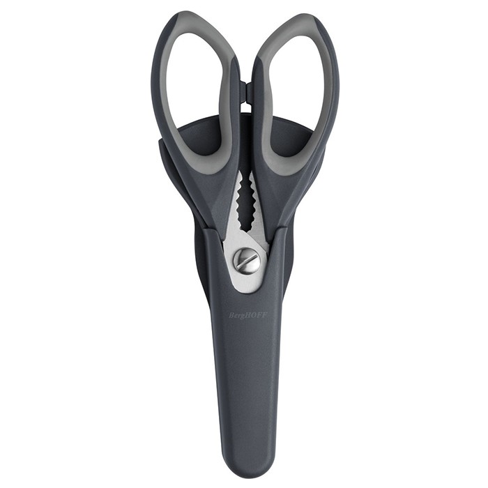 Ножиці виготовлені з високоякісної нержавіючої сталі. Ручки з поліпропілену і ТПР. Футляр сірого кольору з поліпропілену з магнітом. Рекомендується мити вручну.