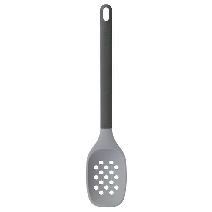 Особливості: термостійкість до 220 ° C; завдяки дизайну з отворами підходить для вилучення овочів та м'яса з фритюрниць та сковорідок, пельменів та вареників з води; ідеальна для посуду з антипригарним покриттям; зручна м'яка ручка має петлю для підвішування