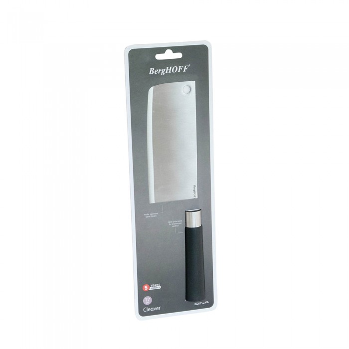 Особливості: ніж легко впорається з великими шматками м'яса і обробкою риби; прямокутне лезо з ідеальним кутом нахилу також підходить для ультратонкої нарізки; ширина леза дозволить легко роздавити часточки часнику або зачерпнути подрібнені інгредієнти; кована нержавіюча сталь тривалий час зберігає гостре заточування; підходить як для професійного, так і домашнього використання; ергономічна, безпечна рукоятка; отвір у кутку леза для вертикального зберігання; легко очищується