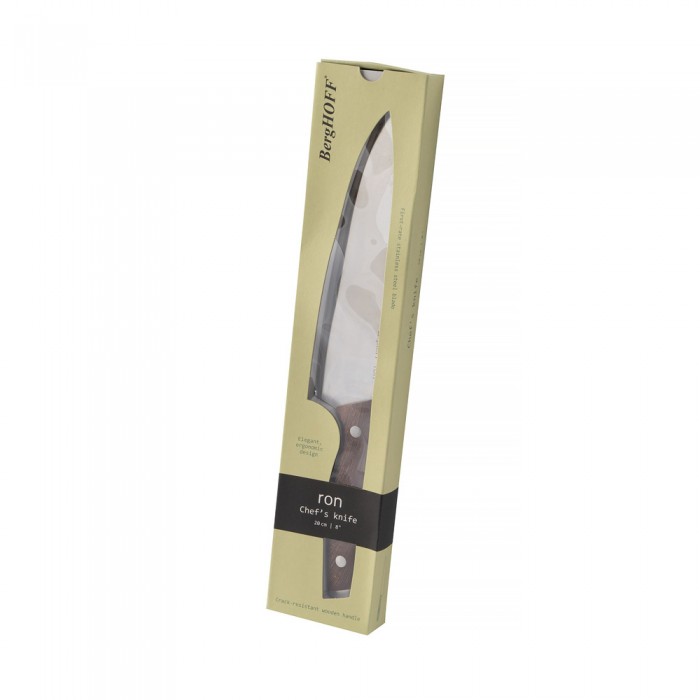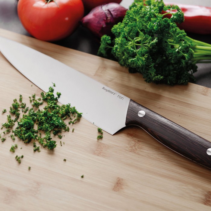Особливості: багатофункціональний ніж для різних завдань; широке лезо для легкого подрібнення часнику чи збирання нарізаних інгредієнтів; ручка має вологовідштовхувальні властивості, не вбирає жир і легко миється, кріпиться до леза за допомогою заклепок; ніж ідеально збалансований; ергономічна ручка для безпечного та зручного утримання