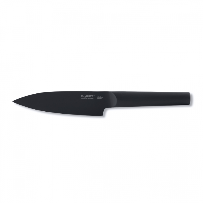 Ніж виготовлений з високоякісної сталі з додаванням хрому, молібдену і ванадію, що надає йому гнучкість і міцність одночасно. Титанове покриття на лезі не дозволяє прилипати шматочкам їжі і робить процес нарізки більш комфортним. Ручка виконана з нержавіючої сталі 18/10. Ніж ретельно збалансований. Рекомендується мити вручну.