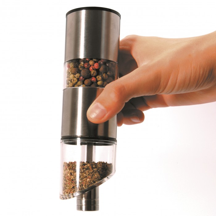 Особливості: функція 2 в 1 - в одній ємності зберігання перцю та солі; легке подрібнення перцю чи інших твердих спецій; підходить як для домашнього, так і для професійного використання