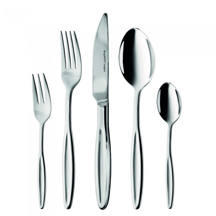 Авторська лінія дизайнера Ральфа Крамера. Столові прибори виготовлені з високоякісної нержавіючої сталі 18/10. Набір на 12 персон включає всі необхідні прилади, включаючи десертну виделку. Прямі ручки і сувора форма - відмінна риса даного набору. Підходить для миття в посудомийній машині (крім столових ножів).