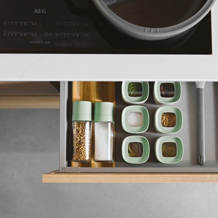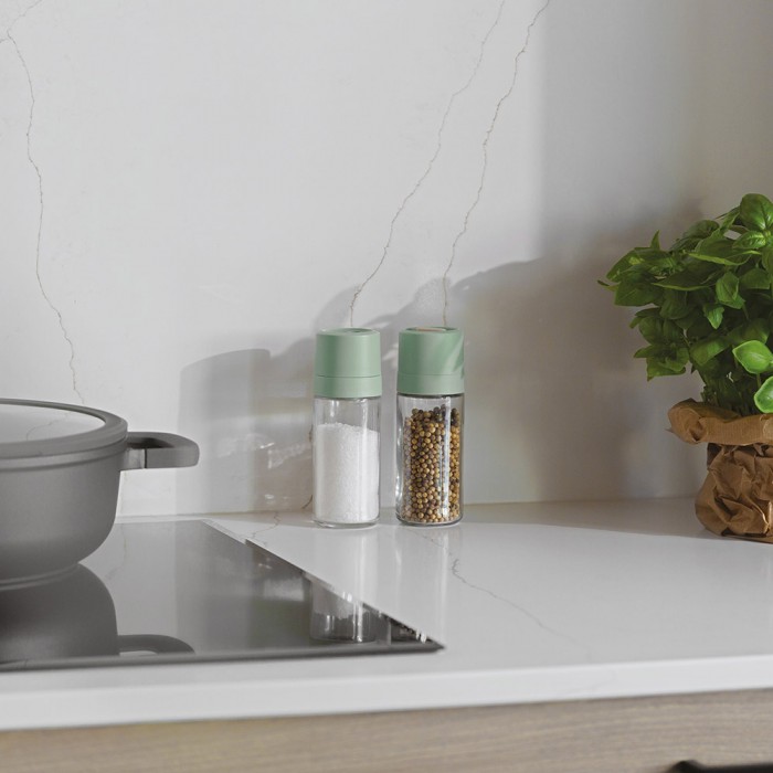 Особливості: ергономічний дизайн; зручний отвір для легкого наповнення; регульований керамічний механізм подрібнення; контроль кількості продукту завдяки різним отворам на кришці сільнички; сумісні з більшістю систем висувних ящиків; подарункова упаковка